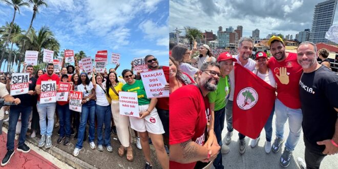 Milhares de pessoas se reuniram no Morro do Cristo, na Barra, em Salvador, para ato público contra a Proposta de Emenda à Constituição – PEC da “Blindagem”, projeto de lei que prevê anistia aos envolvidos nos atos do 8 de janeiro. A manifestação, que aconteceu simultaneamente em ao menos 33 cidades do país, incluindo 22 capitais, e ao redor do mundo, neste domingo (21/09), contou com a presença de artistas como Wagner Moura e Daniela Mercury, movimentos sociais e políticos de esquerda.