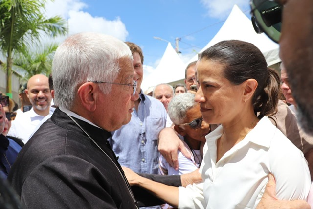 Neste domingo (12), a governadora Raquel Lyra participou da missa de encerramento da 22ª edição da Festa da Divina Misericórdia, no município de Arcoverde, Sertão do Moxotó. A celebração aconteceu no Santuário da Misericórdia, local de fé e peregrinação fundado em 2007 pelo padre Adilson Simões. A chefe do Executivo estadual ressaltou entregas realizadas na região. A vice-governadora Priscila Krause também acompanhou a cerimônia.
