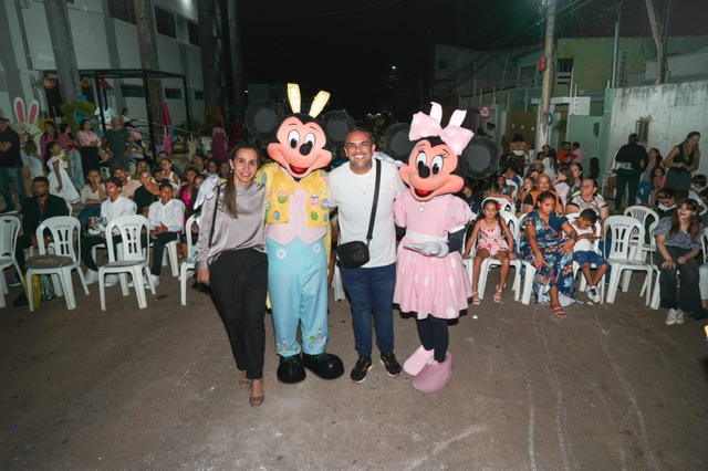 “A Páscoa é um momento de reflexão e transformação para nós. É tempo de lembrarmos cada vez mais do amor de Cristo por todos nós. E é assim que através das Secretarias de Educação, Juventude e Turismos, estamos levando alegria, amor e muita Cultura para nossas crianças”, disse o prefeito, Evilásio Mateus.