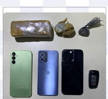 Na abordagem, os ocupantes apresentaram visível nervosismo. Durante busca pessoal e veicular, foram encontrados: 01 (um) invólucro plástico marrom contendo substância em pó branco, semelhante à pasta base de cocaína, pesando aproximadamente 210g; 01g (um grama) de maconha pronta para consumo; Bitucas de cigarros de maconha; Conforme relato dos suspeitos, estes se encontravam hospedados em uma residência alugada, localizada na zona rural, a cerca de 20 km da cidade, cujo proprietário não foi identificado, e onde permaneceriam pelo período de 30 dias.